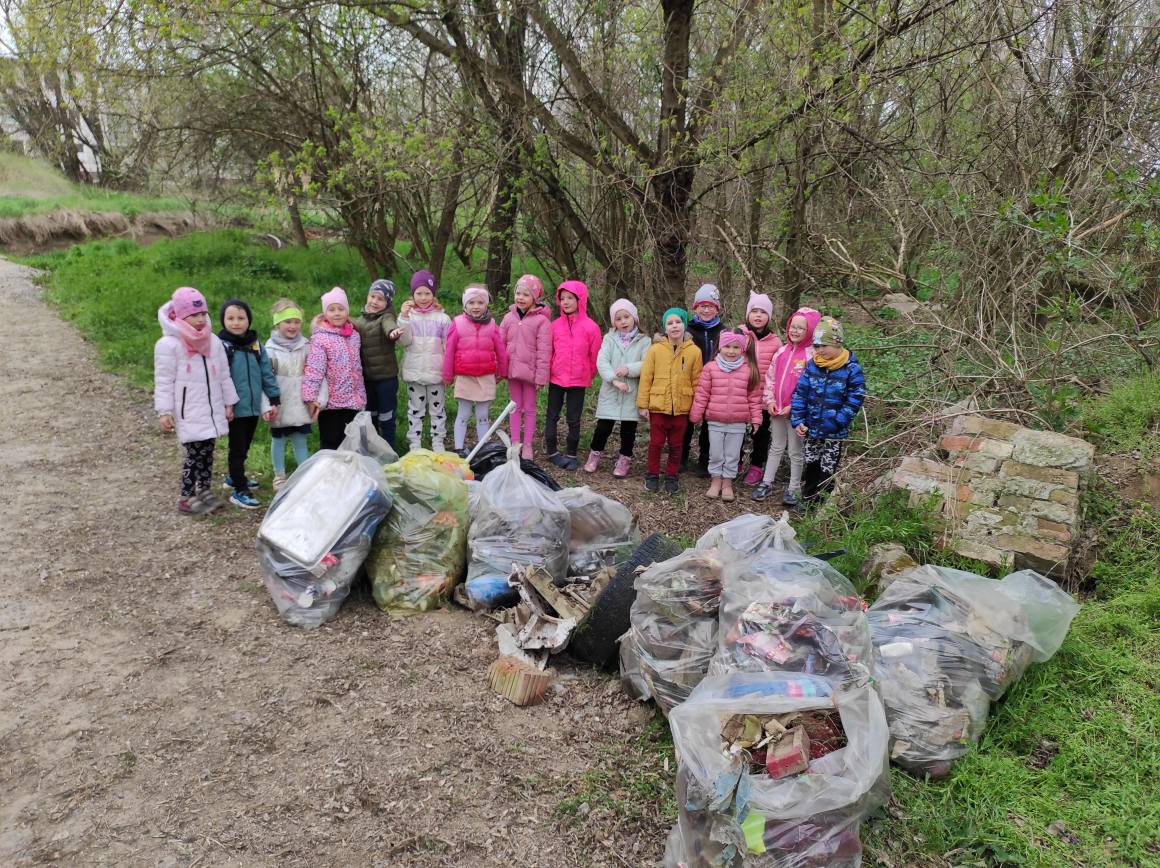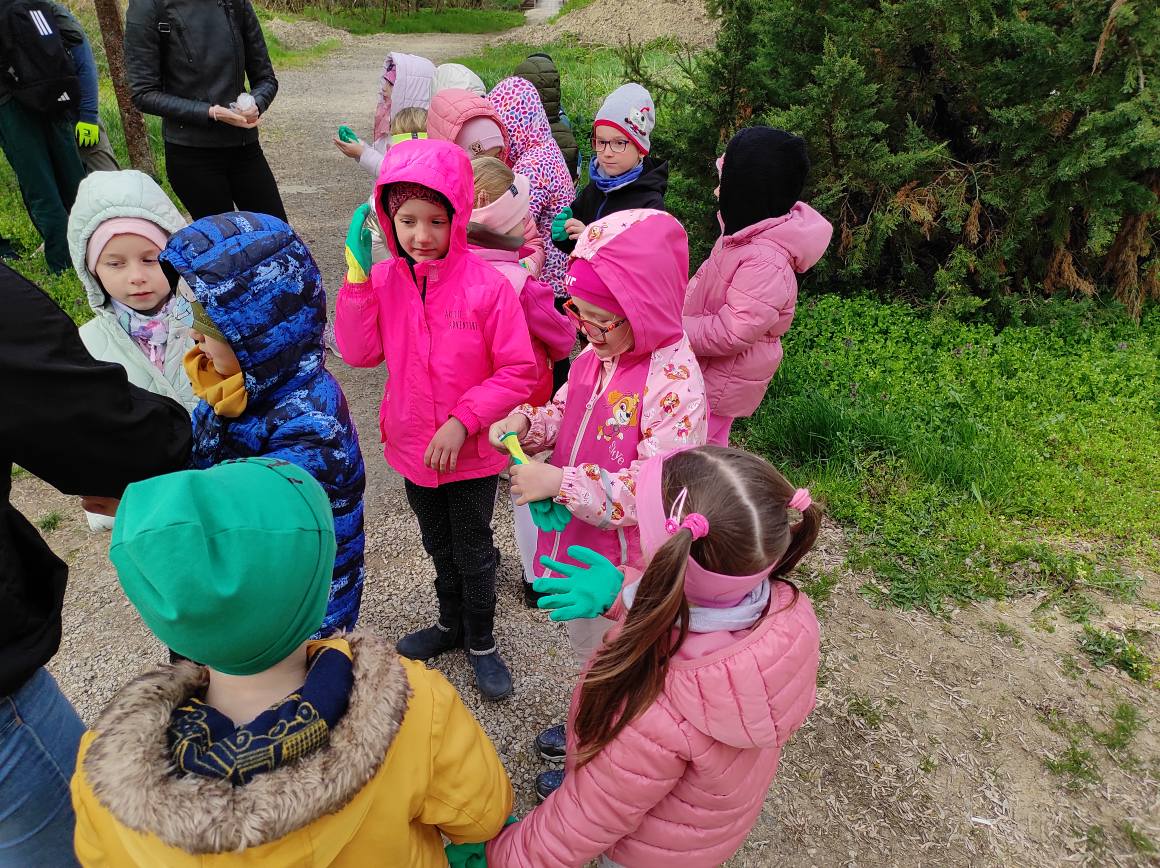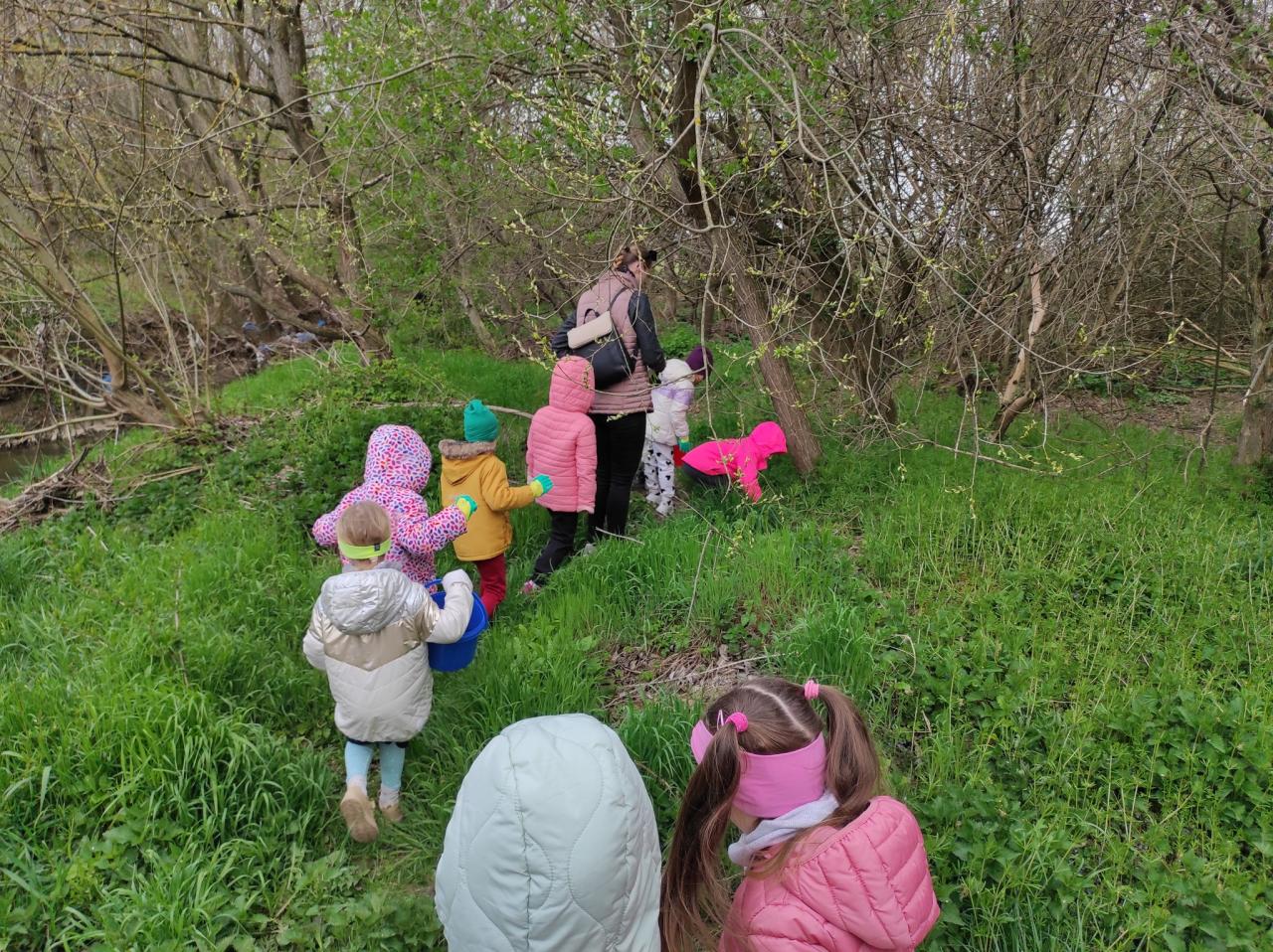 Tu ich pri lavičke cez potok čakali študenti so svojou majsterkou odborného výcviku Jankou. Oboznámili ich s vodným tokom, opísali stromy v blízkosti a odovzdali im darček. Drevené kocky s rôznymi motívmi, ktoré vyrobili študenti počas praktickej výučby. Potom si stanovili cieľ druhej časti exkurzie a to vyčistiť okolie potoka. Nasadili rukavice, zobrali vedierka a vydali sa na dobrodružnú cestu. Deti spolu so študentmi pracovali usilovne ako včeličky. Okrem zbierania odpadkov opisovali a pomenúvali rastliny, ktoré videli. Viedli spoločné rozhovory o spôsobe a potrebe ochrany prírody. Po ukončení exkurzie si spoločne pochutnali na domácej bublanine a spokojné sa vrátili do materskej školy. Deti boli nadšené a sľúbili si, že nikdy nebudú znečisťovať prírodu, aby ju po nich nikto nemusel upratovať. Prírodu vnímajú ako zdroj oddychu, zábavy a zážitku. Túto spoločnú aktivitu sme zrealizovali v rámci projektu Zelená škola zameranú na tému VODA.