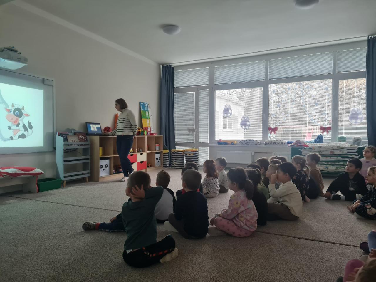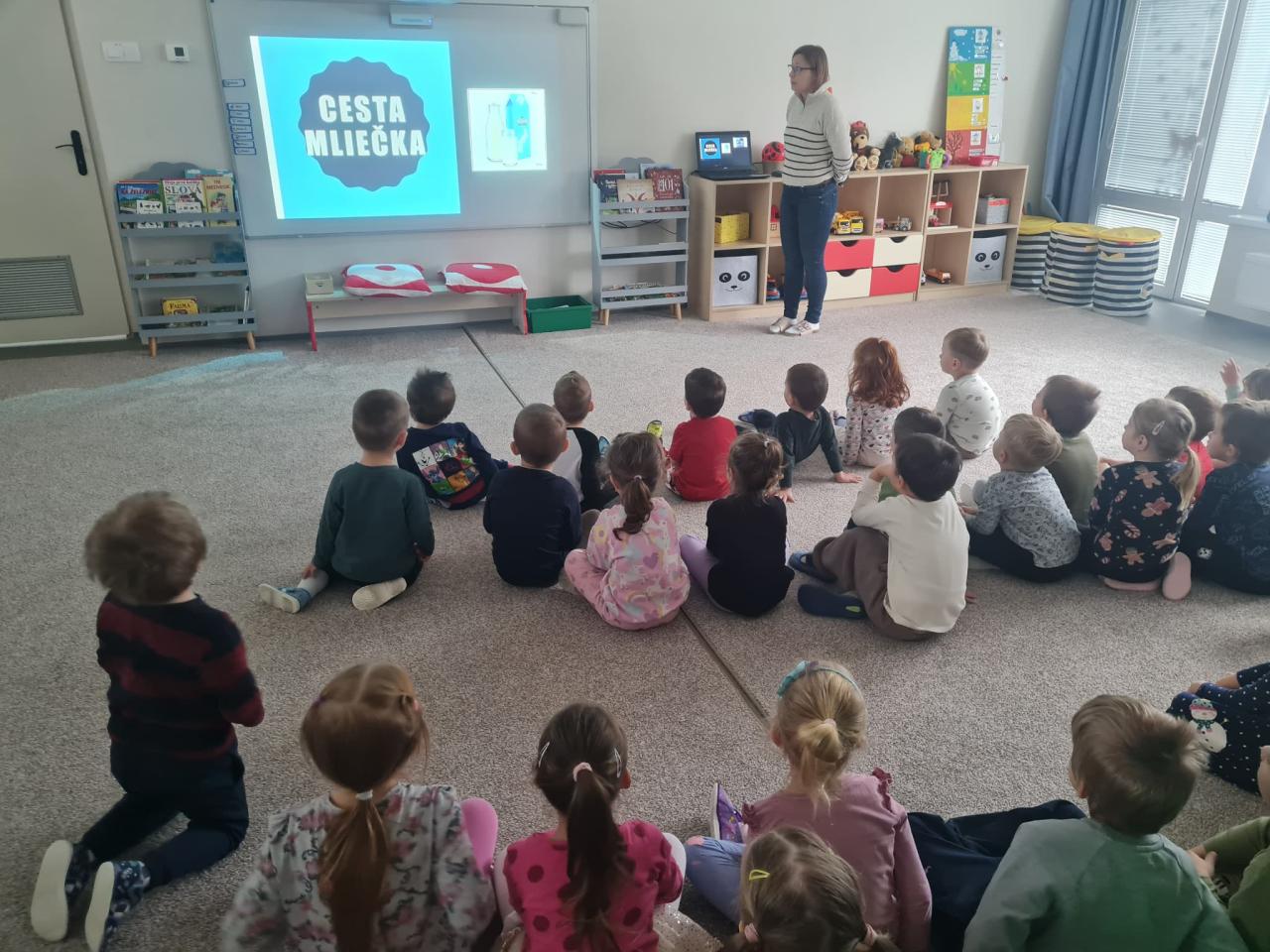 Deti sa oboznámili o tom, odkiaľ mlieko pochádza, aké zvieratá nám ho dávajú a prečo je dôležité pre naše zdravie. Spoločne si prezreli obrázky, vypočuli krátky príbeh o kravičke.