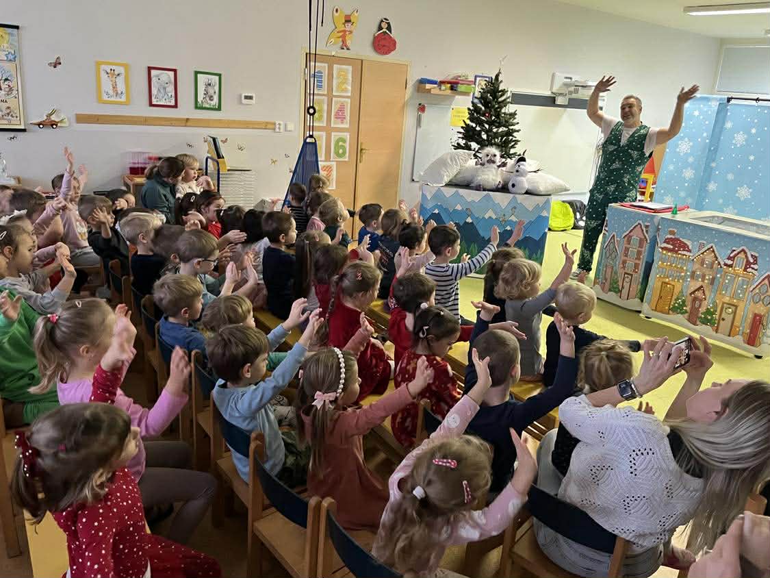 Divadlo Oskar k nám zavítalo s pútavým a poučným predstavením "Yeti a zázračná vločka", ktoré deťom vnieslo do sŕdc radosť a vianočnú náladu. Hlavnou postavou príbehu bol, ako už názov napovedá, dobrosrdečný, no zasnežený hrdina – Yeti. Ten, žijúci vysoko v zasnežených Himalájach, netušil, čo sú Vianoce, a hrozilo mu, že zostane smutný a sám. A práve tu nastúpili naši malí škôlkari! Herci z Divadla Oskar vtiahli deti do deja nielen vtipnými dialógmi a chytľavými pesničkami, ale aj priamou interakciou. Deti sa tak stali súčasťou rozprávky, pričom spoločne Yetimu s nadšením vysvetľovali a ukazovali, aké sú najkrajšie vianočné zvyky a tradície: vôňa kapustnice, pečenie medovníkov, ligot stromčeka a samozrejme, radosť z darčekov. Predstavenie bolo ideálne prispôsobené veku detí, ktoré ani na chvíľu nestratili pozornosť. Vtipný, dojímavý a krásne spracovaný príbeh s jasným posolstvom o sile priateľstva a láskavosti sa postaral o to, že sa roztopilo aj to najväčšie "ľadové srdce". Deti odchádzali s rozžiarenými očami a nezabudnuteľným divadelným zážitkom, ktorý im spríjemní čakanie na Vianoce.