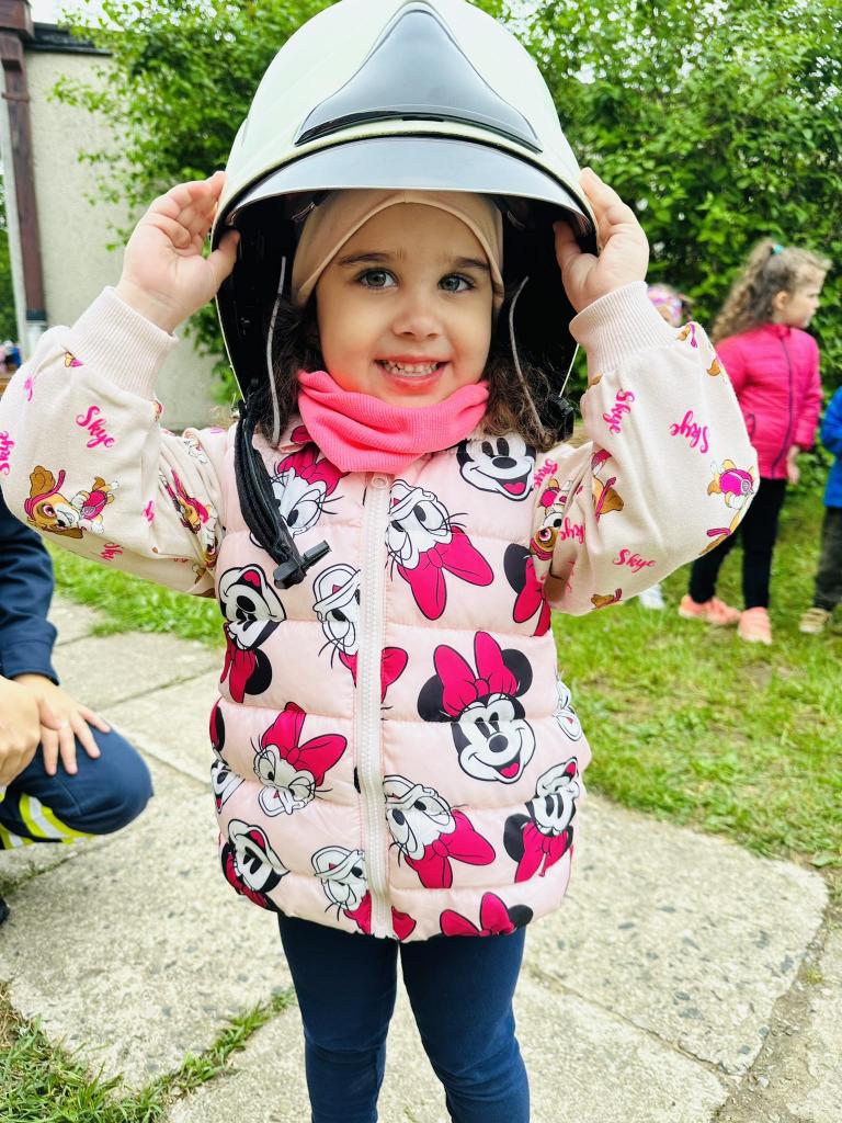 Deti si mohli vyskúšať hasičskú prilbu aj striekanie prúdnicou. Deťom sa veľmi páčilo vysúvanie stožiaru s reflektorom ale najmä spustenie sirény.