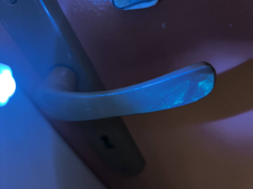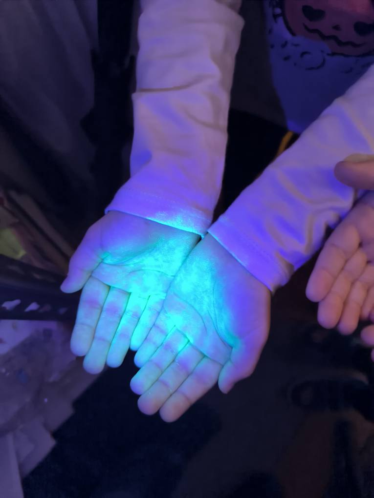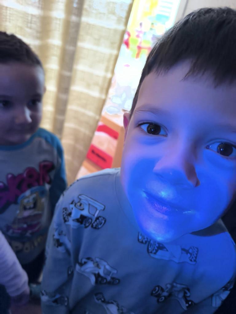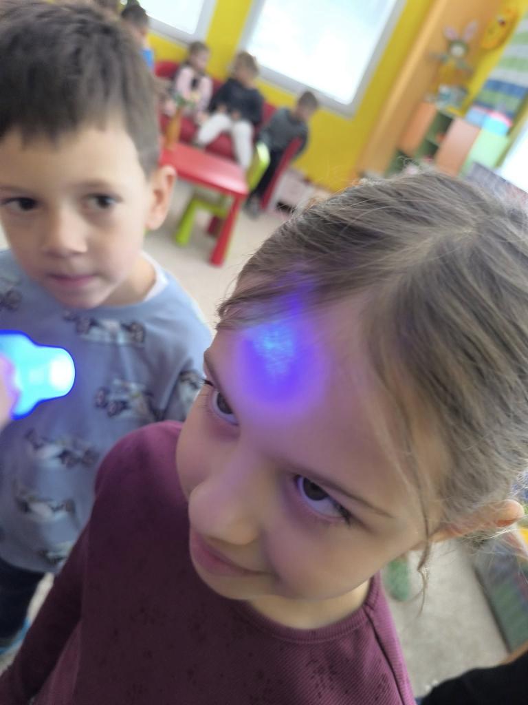Pri ranných hrách sa deti venovali zvyčajným činnostiam, len s malým rozdielom. Vybraným deťom pani učiteľka kontaminovala ruky " BACILMI". Použila transparentný forenzný detekčný UV púder. V rannom kruhu si deti spoločne vysvetlili z akého dôvodu im ruky kontaminovala a porozprávali sa, prečo je dôležité ruky si umývať, keď napríklad kašleme alebo ako si pri nedostatočnej hygiene predávame bacily. Následne nastal okamih pravdy. Pod UV svetlom sa deti zahrali na detektívov. Preskúmali triedu, aby zistili, kto sa čoho dotýkal a ako UV púder poroznášali po povrchoch bez toho, aby o tom vedeli. Deti zistili, že púder sa objavil na hračkách, kľučkách, stolíkoch, ba dokonca niektorým deťom aj na tvári. Výsledok bádania môžete vidieť na fotografiách.