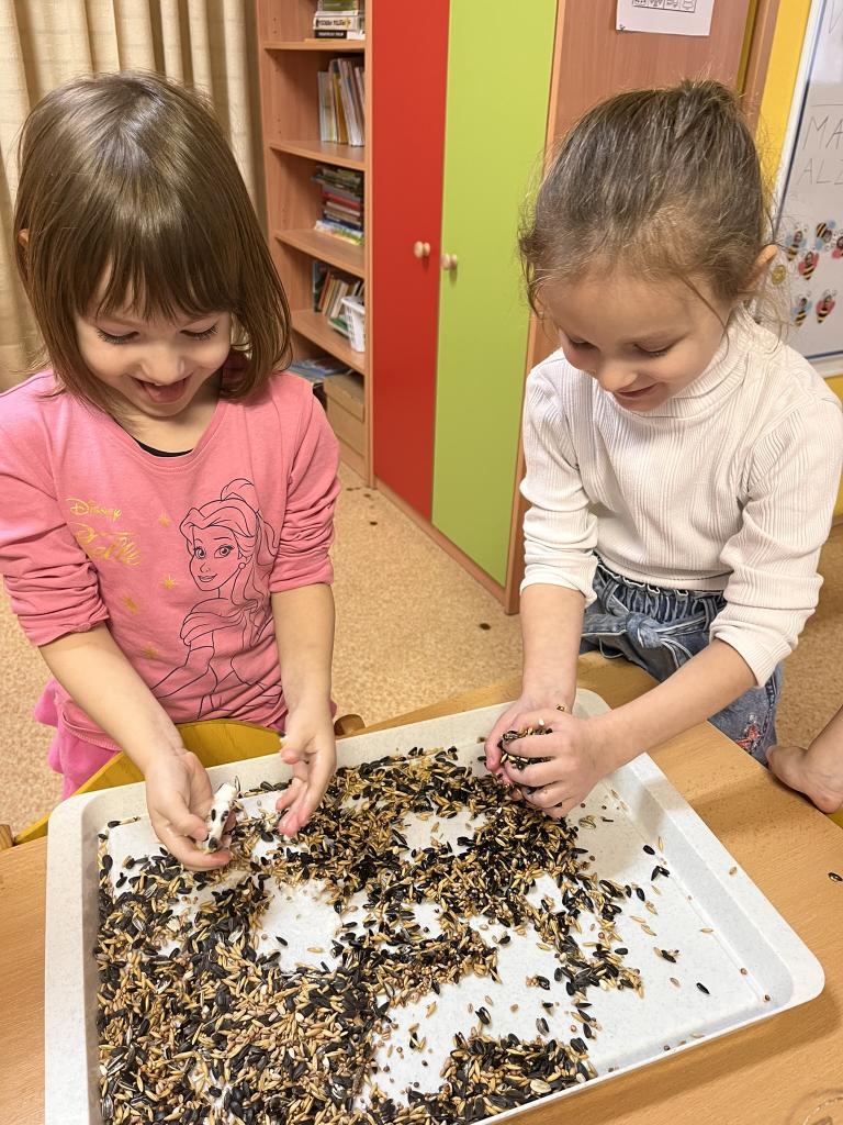 Vlastnoručne miešali zmes slnečnice, prosa a ďalších dobrôt, ktoré potom trpezlivo tvarovali do guľôčok. Precvičili si jemnú motoriku, trpezlivosť a rozvíjali si empatické cítenie. Maškrty potom rozvešali na stromy na školskom dvore. Teraz majú deti veľkú radosť, že vtáčikom pomohli prečkať mrazivé dni. Je celkom isté, že aj malé ruky dokážu robiť dobré skutky.