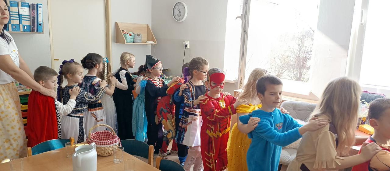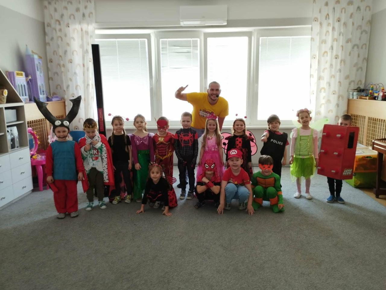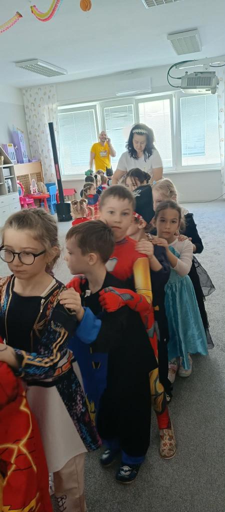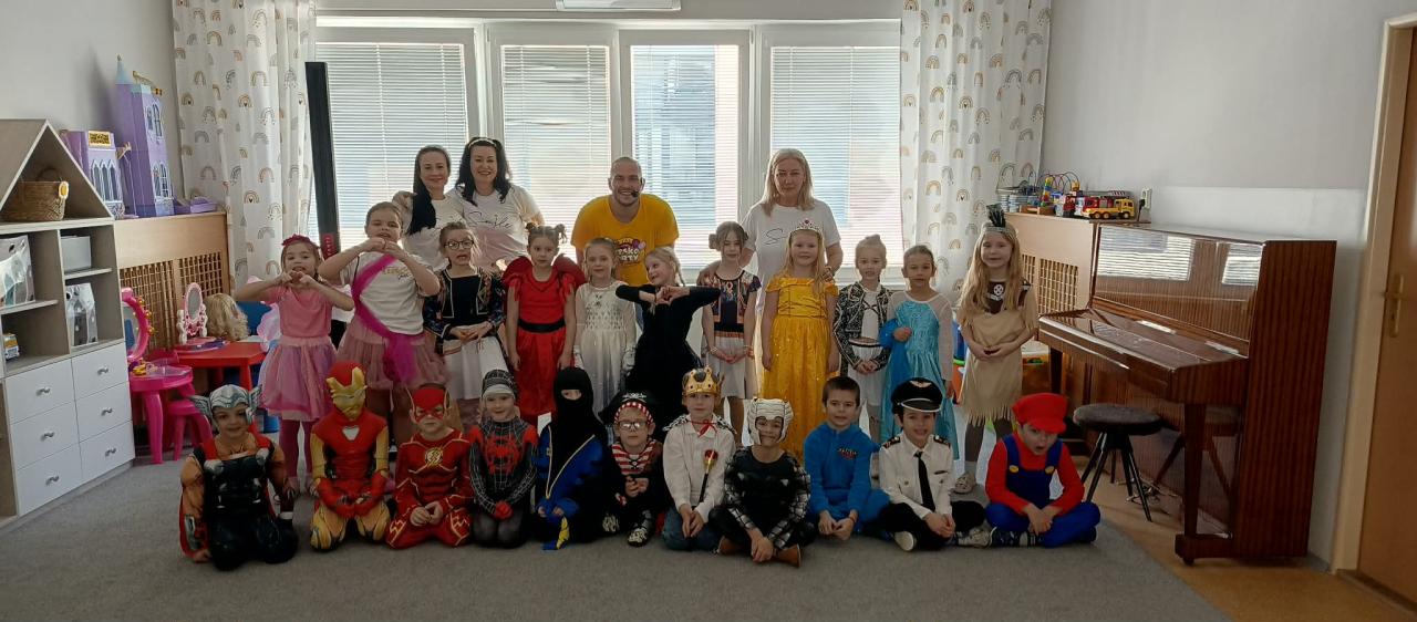 Karneval sme ukončili spoločným fotením a malým prekvapením pre každého účastníka. Ďakujeme rodičom, Ujovi Ľubovi za Interaktívny hudobný program pre predškolákov absolvujúcich PPV na príprave kostýmov a za podporu, ktorá robí naše školské podujatia výnimočnými.