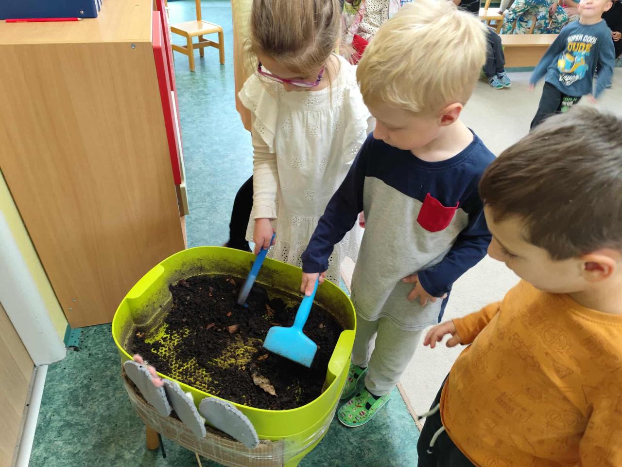 Zážitkovým učením sa deti oboznámili s prípravou kompostu a celým procesom jeho založenia. Jurko deťom vysvetlil, že nič v prírode sa nestratí, iba sa premení. Z toho, čo vyhodíme sa môže získať niečo nové a užitočné. Napríklad úrodná zem, ktorá pomáha rásť rastlinám, stromom i kvietkom.