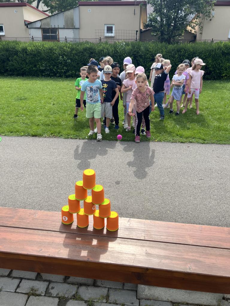 A my sme sa postarali o to, aby bol tento deň pre našich škôlkarov nezabudnuteľný. Celé dopoludnie sa nieslo v duchu zábavy a smiechu. Deti si mohli vyskúšať rôzne súťažné disciplíny – preliezanie tunelom, maľovanie indiánskych stanov, hádzanie loptičiek na cieľ a mnoho ďalších. Na záver dostali všetky deti malý darček- medailu a sladký melón. Veríme, že sme sviatok detí oslávili presne tak, ako si zaslúžia – s láskou, úsmevom a zážitkami, na ktoré budú ešte dlho spomínať.