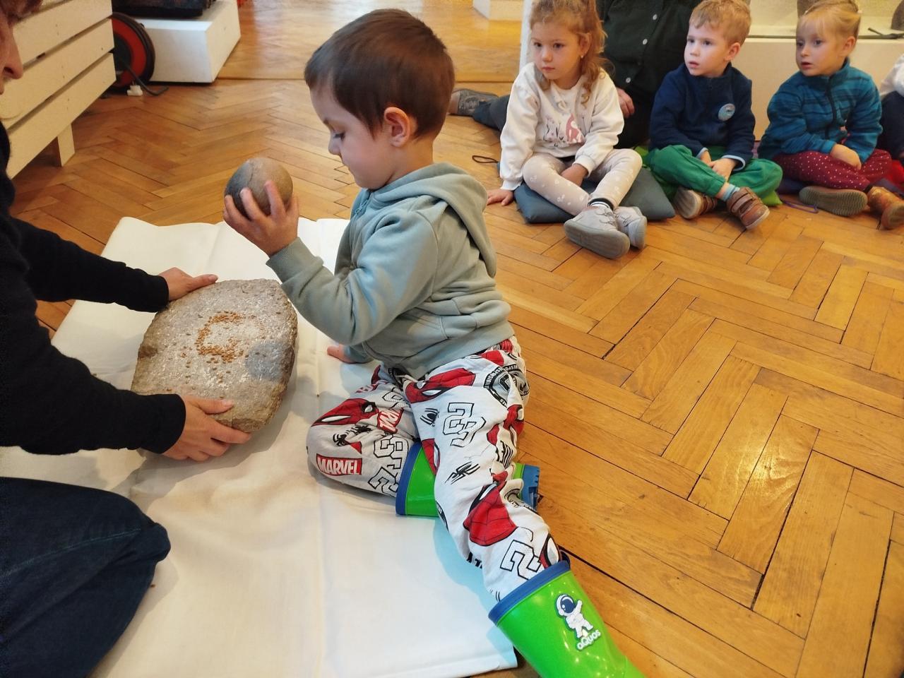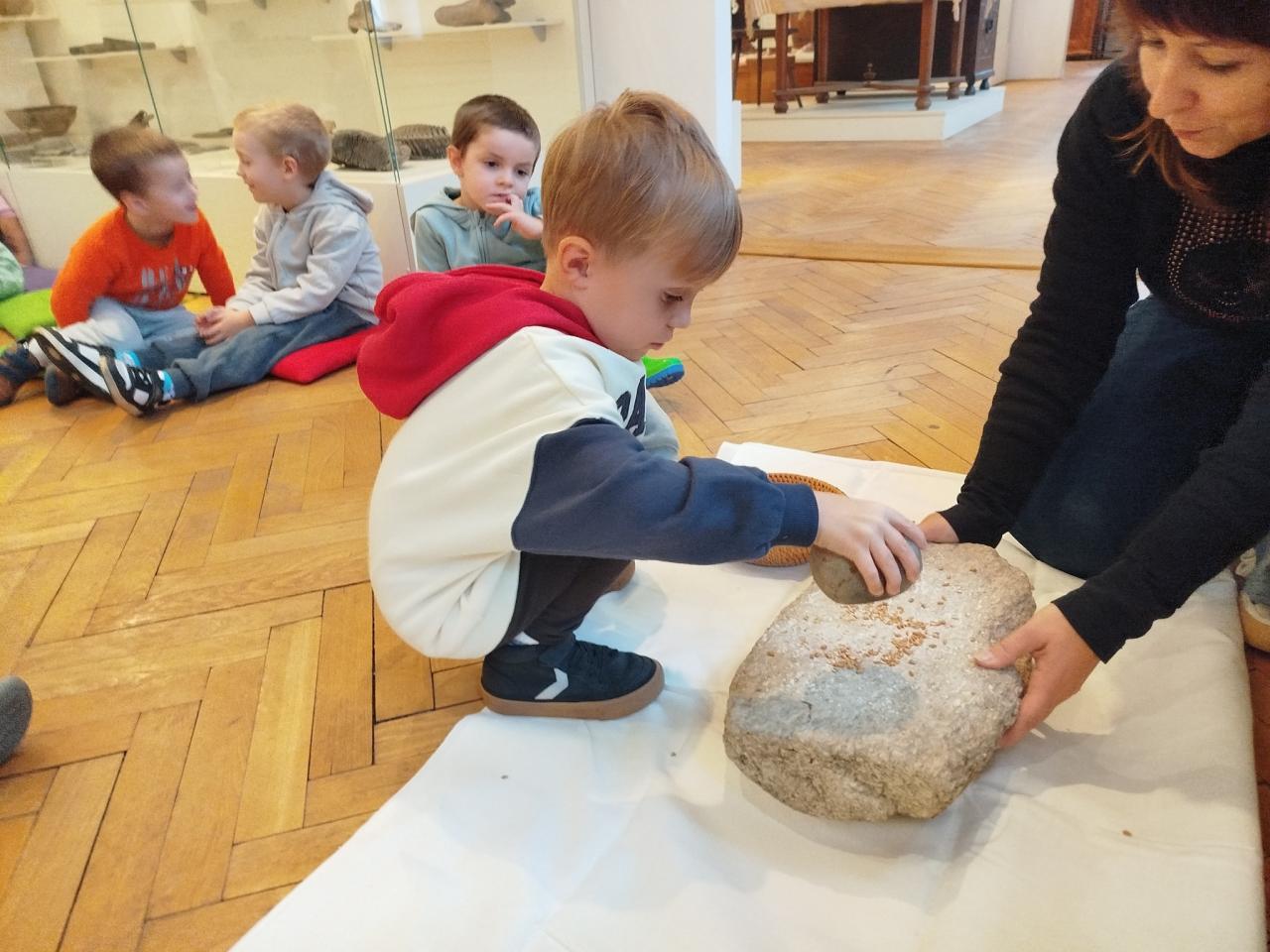 Okrem pútavého rozprávania pedagogičky múzea o živote mamutov sa deti dozvedeli o spôsobe drvenia obilia, čo si aj prakticky vyskúšali. Dĺžku mamuta prezentovali vlastným telom tak, že sa postavili vedľa seba a zistili, že mamut bol dlhý, ako nimi vytvorený rad. K ich veľkému objavu patril zub mamuta, ktorý hľadali vo vitríne. A bol teda poriadne veľký. Po vyčerpávajúcom bádaní im padla vhod prehliadka stálej expozície. Minulosť je zdrojom poznávania, ktoré je základom budovania kognitívnych schopností detí predškolského veku.