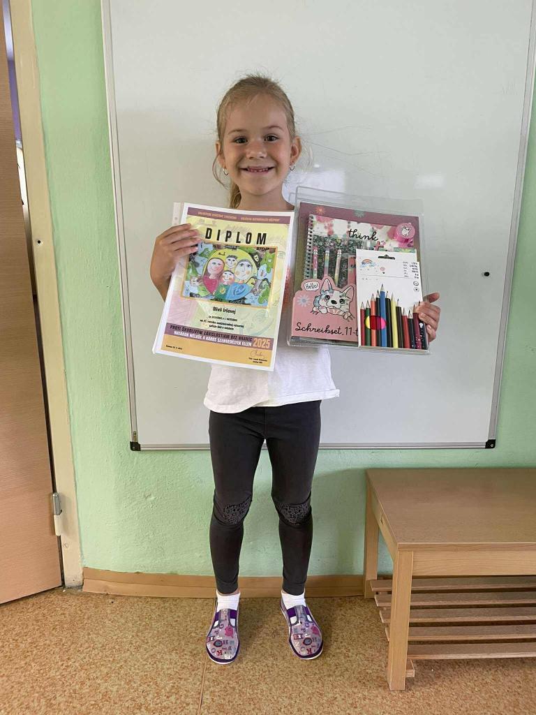 Olívinke srdečne blahoželáme a ďakujeme za krásnu reprezentáciu našej materskej školy. Veríme, že bude naďalej rozvíjať svoj výtvarný talent a že jej úspech bude inšpiráciou aj pre ostatné deti.