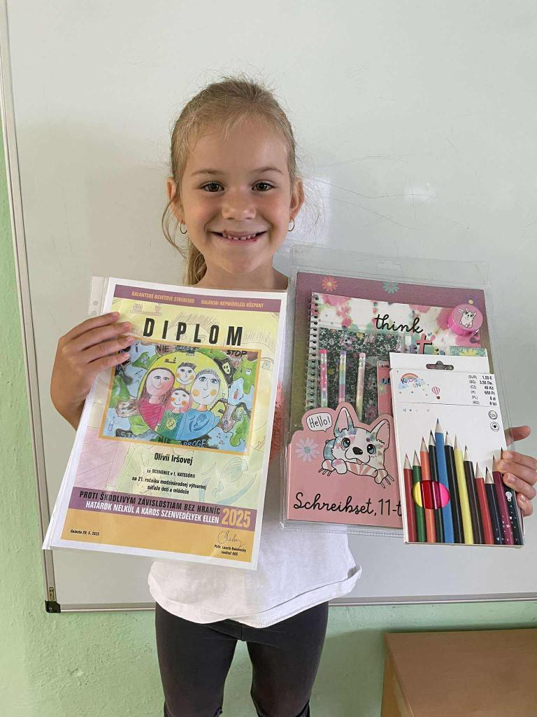 Olívinka svojím obrázkom veľmi výstižne vyjadrila dôležité posolstvo- „NIE drogám“ a porotu zaujala nielen nápaditosťou, ale aj výtvarným spracovaním a zrozumiteľnosťou odkazu.